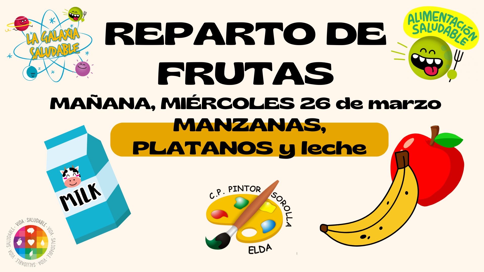 Mañana durante el recreo se repartirá leche, plátanos y manzanas BIO dentro de nuestra participación en el proyecto de CONSUMO DE FRUTAS Y LÁCTEOS de la Conselleria de Agricultura.